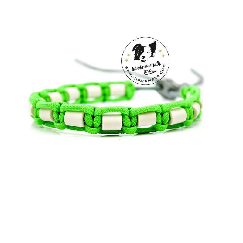 Unsere EM-Keramik-Zeckenbänder werden in sorgfältiger Handarbeit aus hochwertigem Paracord Type S und Original EM-Keramik gefertigt. Der robuste Verschluss erlaubt auch ein wildes Toben deines Hundes. Das EM-Keramik Zeckenhalsband wird aufgrund der regenerativ positiven Wirkung das ganze Jahr, zusätzlich zum Haupthalsband, getragen. Bitte beachte aber, dass tiefe Außentemperaturen dazu führen können, dass die EM-Keramiksteine brüchiger werden und sich ablösen können.