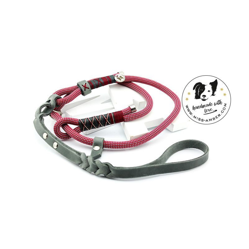 Stell dir hier dein eigenes Unikat der fixen, nicht verstellbaren Retriever-/Moxonleine in einer Kombi aus Tau oder Premiumseil mit Leder zusammen!