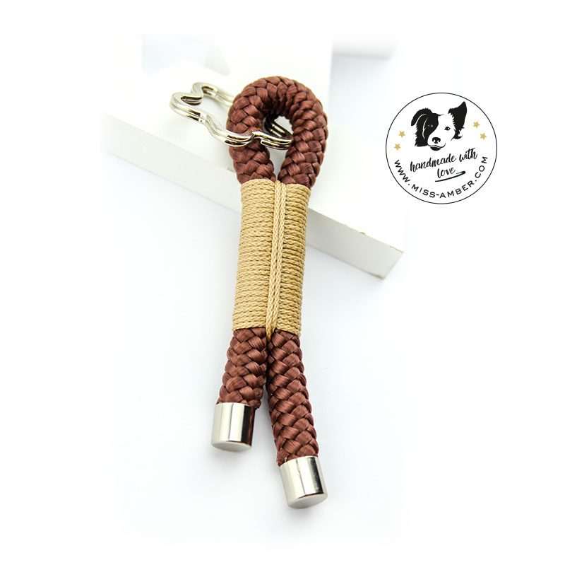 Der farbenfrohe Schlüsselanhänger macht die Schlüsselsuche um einiges einfacher. In Handarbeit passend zu Halsband und Leine gefertigt.